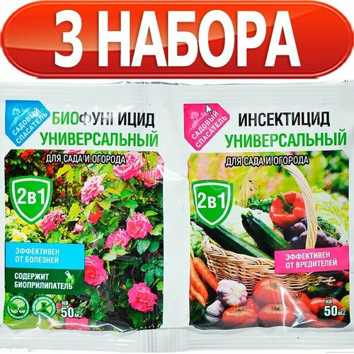 3 набора Универсальный для сада и огорода 2в1 биофунгицид 10г + инсектицид 2мл для профилактики и защиты от болезней и вредителей Садовый спасатель