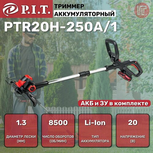 Триммер аккумуляторный P.I.T. PTR20H-250A/1 20В, шир. кошения 250, леска 1.6мм, 1АКБ 2Ач, ЗУ на системе OnePower