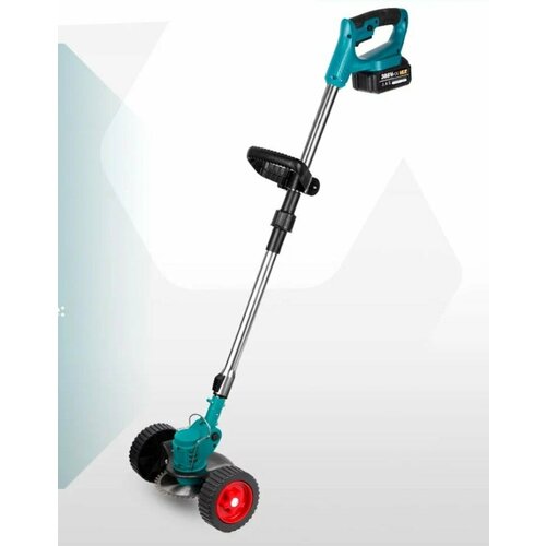 Мощный триммер, газонокосилка, колесный, Li-Ion аккумулятор, ширина скашивания 15см, несамоходный