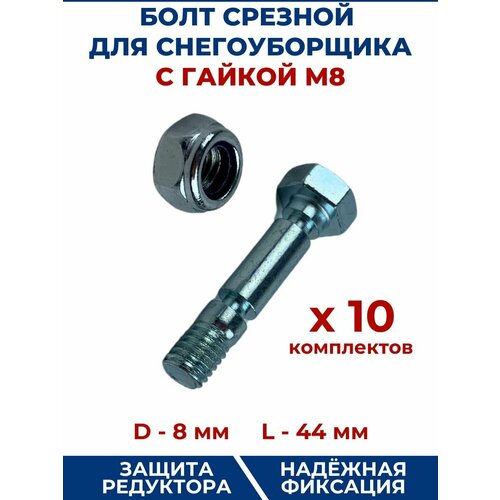 Болт срезной с гайкой М8 для снегоуборщика, комплект 10 шт