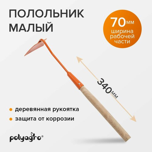 Полольник малый с деревянным черенком Polyagro предназначен для ухода за садом и огородом при рыхление, аэрация, прополка почвы. Рабочая часть выполнена из стали и окрашена для предохранения от коррозии.
