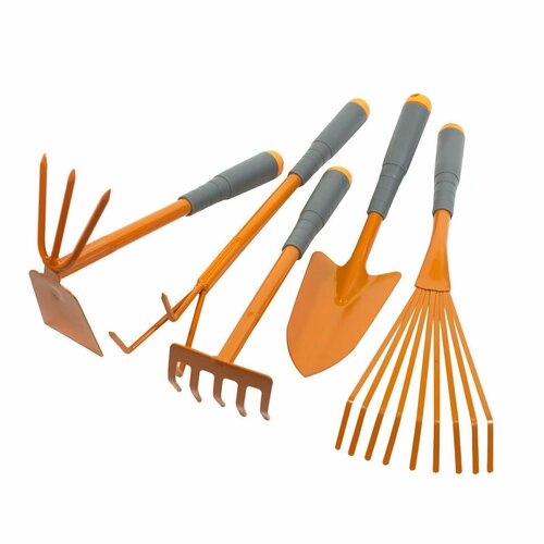 Набор POLYAGRO совок, грабли 5-зубые, веерные, мотыжка комбинированная, рыхлитель, 2 удлиненные рукоятки 7661705