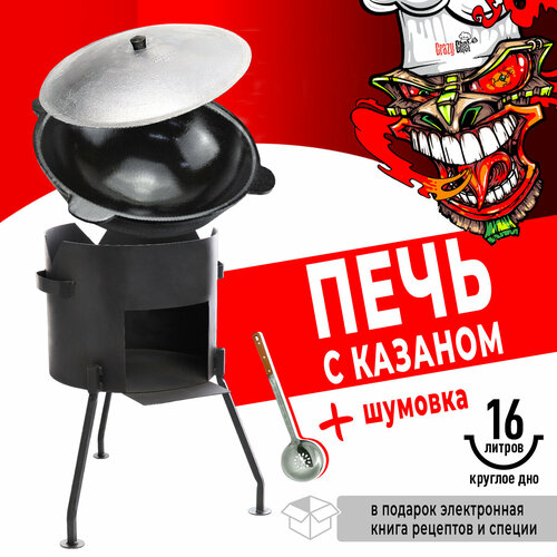 Казан чугунный с круглым дном, 16 л, с крышкой + печь со съемными ножками
