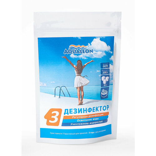 Дезинфектор быстрый хлор Aqualeon в таблетках по 20 гр, 0,2 кг