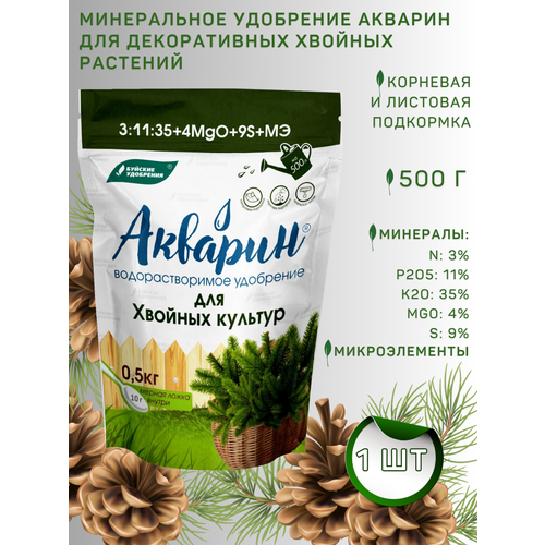 Удобрение Акварин водорастворимый "Для хвойных культур", 0,5 кг