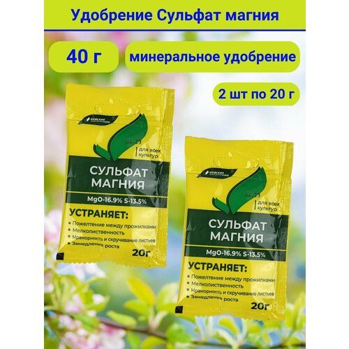 Сульфат магния водорастворимое минеральное удобрение, 2 упаковки по 20 г.