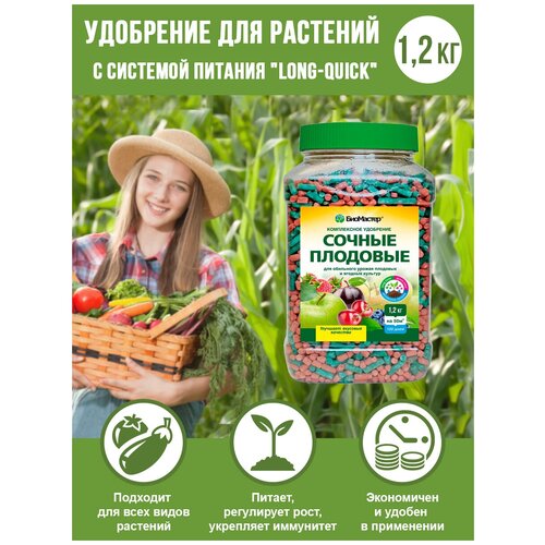 Удобрение для плодовых и ягодных культур "Сочные плодовые" БиоМастер, Комплексное удобрение с системой питания "Long-quick", 1,2 кг