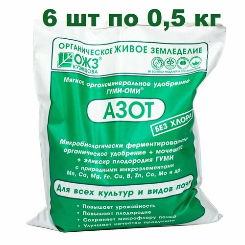 Удобрение органоминеральное ОЖЗ ГумиОми Азот для сада, огорода 3 кг (6 шт по 0,5 кг)
