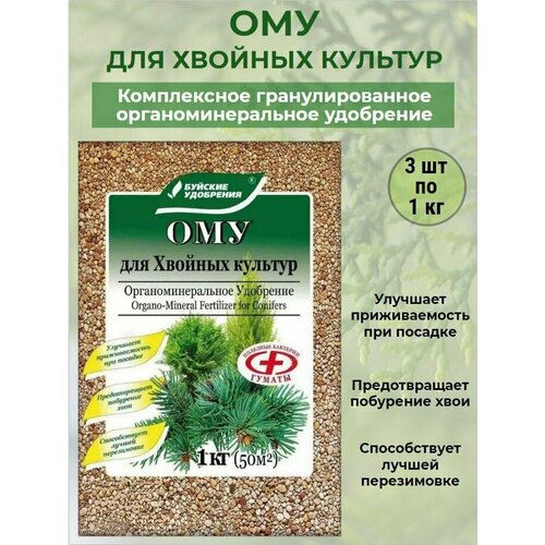 ОМУ для хвойных культур комплексное гранулированное органоминеральное удобрение для растений 3 шт 1 кг