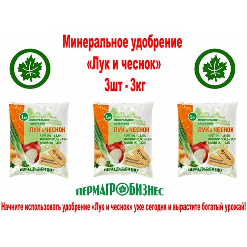 Минеральное удобрение, лук и чеснок, пермагр бизнес Азот (N) -15,5% Фосфор (P2 O5)-15,5% Калий (K)-23% 1кг - комплект 3шт