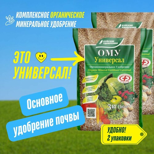 Комплексное гранулированное органоминеральное удобрение ОМУ Универсал, Буйские удобрения 2 упаковки по 3 кг (6 кг)