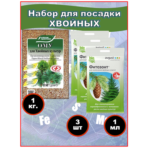Комплексное гранулированное ОМУ «Для хвойных культур» Буйские удобрения 1 кг. + Фитозонт для укоренения 1 мл - 3 шт.