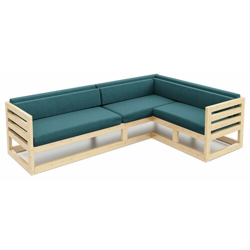 Садовый диван угловой магнус-у правый, бирюзовый-сосна, вельвет, деревянный, садовый, скандинавский лофт