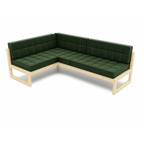 Угловой садовый диван СЕГА-У-С левый, зеленый-сосна, велюр, массив дерева, для кафе и бара, для салона красоты