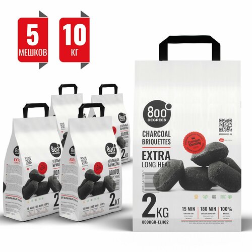 Брикетированный уголь 800 Degrees (гриль и мангал) 5 мешков по 2 кг