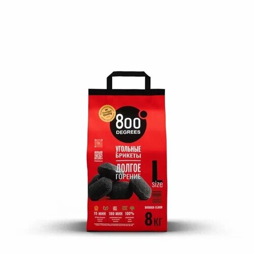 Уголь брикеты 800 Degrees Долгое Горение, мешок 8 кг L