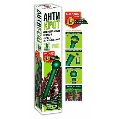 Средство от кротов мощное 10 соток на батарейке Грин Бэлт ТЭ антикрот ультразвуковой отпугиватель