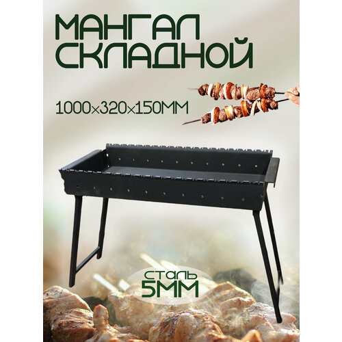 Мангал MangalKazan, 100 см x 30 см x 15 см, толщина стали 5мм, складной, с ножками