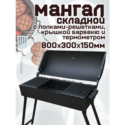 Мангал складной 800х300х150мм с крышкой барбекю и полками-решетками, 3мм, на 15 шампуров