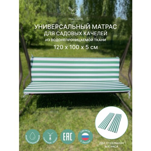 Универсальный матрас для садовых качелей, подушка на качели 120*100*5 см зелен полоса