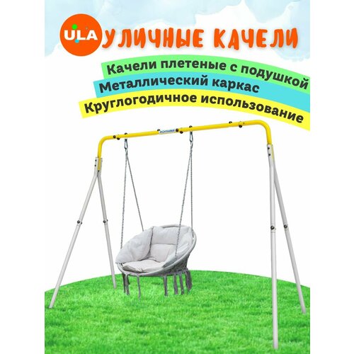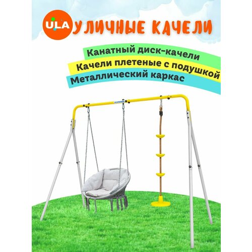 Уличные качели детские ROMANA с диск качелями и плетеными