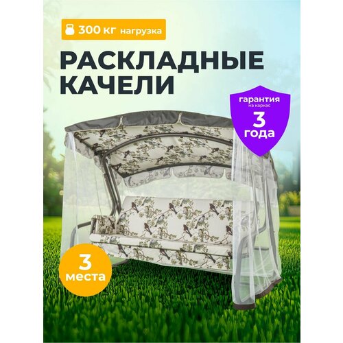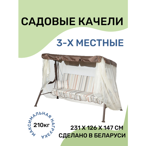 Качели садовые подвесные 3-х местные, 209.5х127х165 см, до 300 кг, Генуя