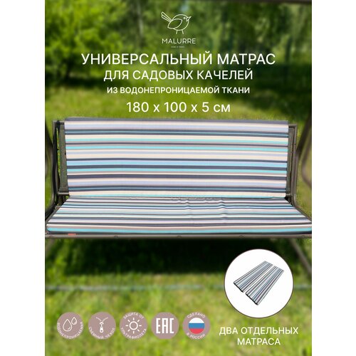 Универсальный матрас для садовых качелей, подушка на качели 130*100*5 см синяя полоса