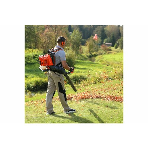 Воздуходувка оснащена щеточным двигателем с оборотами 13000 и 16000 об/мин. Это обеспечивает высокую скорость выдувания - 44 и 55 м/с, а также производительность выдувания 650 м³/ч.