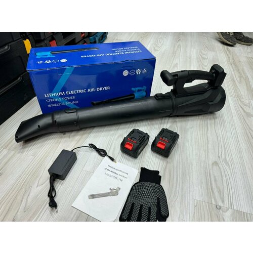 Воздуходувка аккумуляторная садовая, 2 АКБ + перчатки, черный