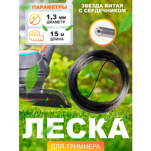 Леска для триммера TrimLine, сечение звезда витая с сердечником, диаметр 1,3 мм, длина 15 м, блистер