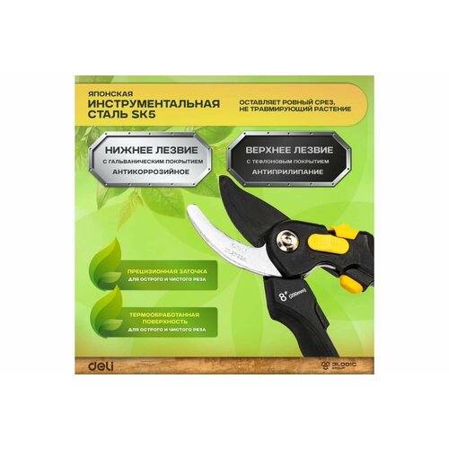 Универсальный садовый секатор DELI DL2789A 200 мм, сталь СК5 98488