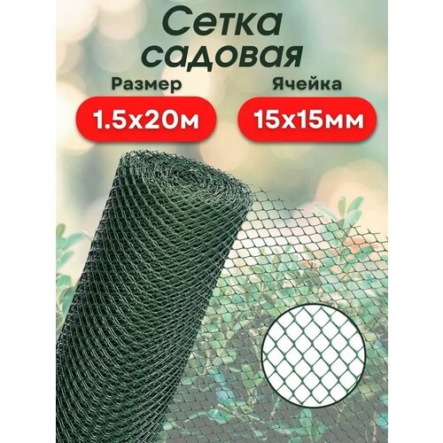 Сетка садовая пластиковая для забора, садовые ограждения огорода и сада ромбическая 1,5*20м (15*15мм) ЭКО