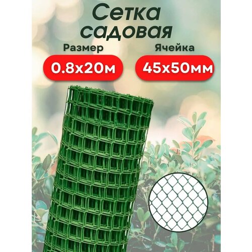 Сетка садовая для забора 0,8х20м (45*50) квадрат зеленая