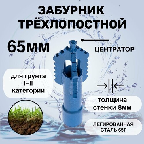 Трехлопастной забурник 65мм для гидробурения скважин