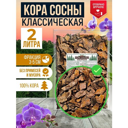 Кора сосны Классическая. Грунт для орхидей. Субстрат. Фракция 3-5 см, 2 литра.
