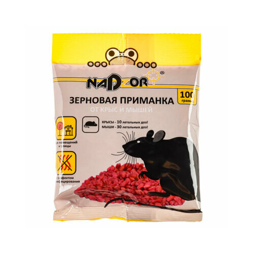 Зерновая приманка для мышей и крыс NADZOR 100 гр отрава с эффектом мумифицирования Надзор