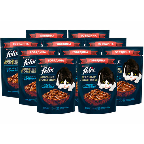 FELIX мясные ломтики для взрослых кошек с говядиной в соусе пауч 75 гр 75 гр х 10 шт Felix