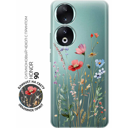 Силиконовый чехол на Honor 90 с принтом "Милые цветочки" прозрачный