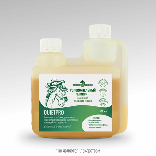 Эликсир Успокоительный Horse-Bio QuietPro на основе льняного масла для лошадей, 1000 мл HORSE-BIO