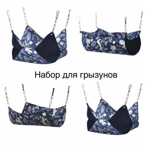 Набор гамаков 23х23 см "Финик" для крыс и других мелких грызунов. Цвет зайки на синем Россия