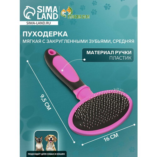 Пуходерка пластиковая мягкая с закругленными зубьями, средняя, 9.5 x 16 см, розовая Пижон