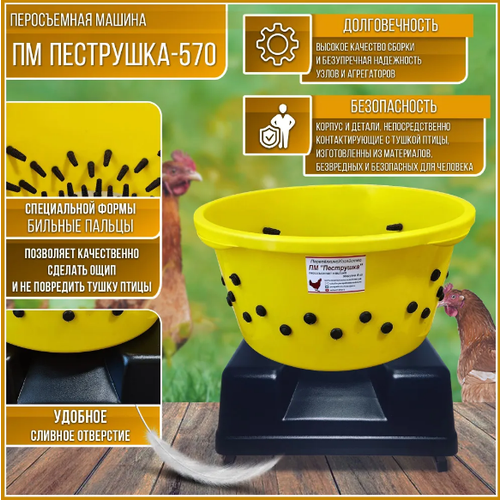 Перосъемная машина ПМ-7У "Пеструшка" для удаления оперения птиц до 8,5 кг.