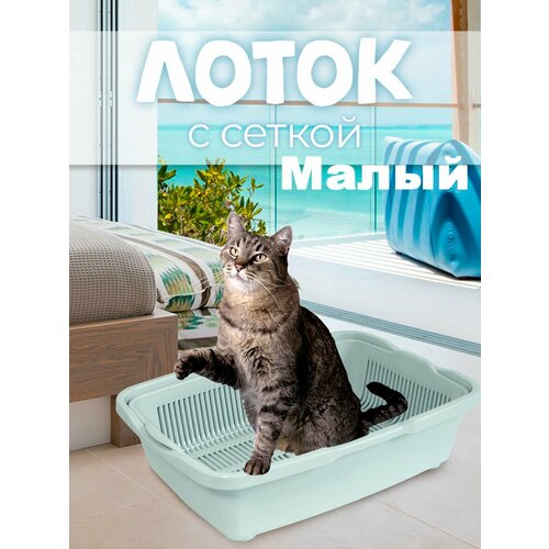 ВСЕ для дома / Лоток для котят с сеткой, маленький. Туалет лоток для животных с решеткой, цвет ментоловый, размер 36,5х25,5х9,5 см DDStyle