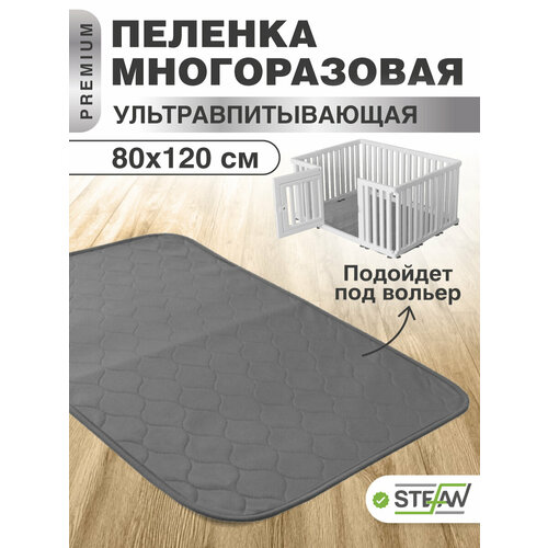 Пелёнка STEFAN (Штефан), ПРЕМИУМ, впитывающая для собак, многоразовая для животных, серая 80х120см, WP-801201