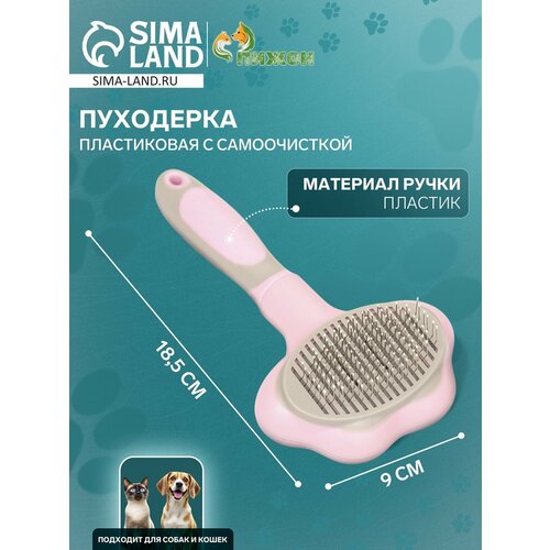 Пуходёрка пластиковая с функцией самоочистки, 9 х 18,5 см, розовая Пижон