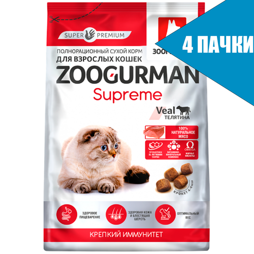 Зоогурман Supreme сухой корм для взрослых кошек со вкусом Телятины 350г (4 пакета)