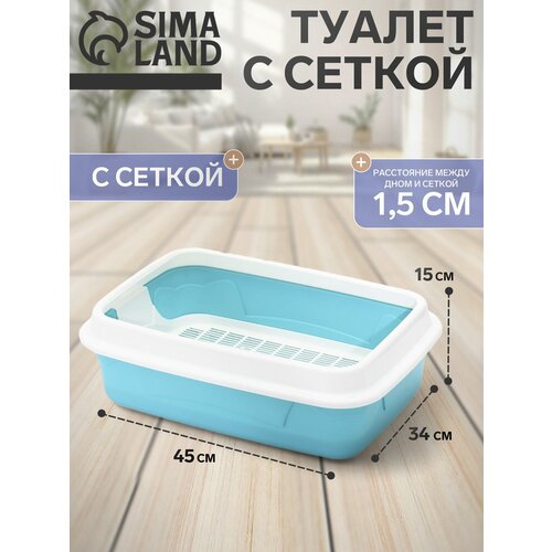 Туалет для животных с бортом и сеткой, размер 45х34х15 см, белый/бирюзовый, лоток Сима-ленд