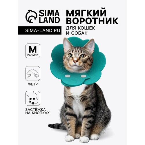 Ветеринарный воротник из фетра "Ромашка", размер M, ярко-бирюзовый Пижон