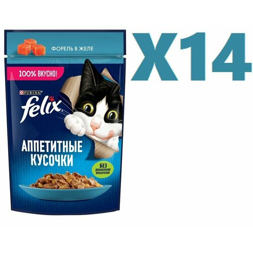 Корм Felix Аппетитные кусочки в желе с форелью 75г 14 шт