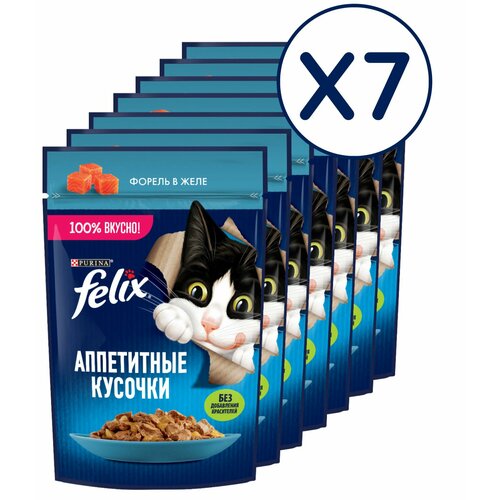 Корм Felix Аппетитные кусочки в желе с форелью 75г 7 шт